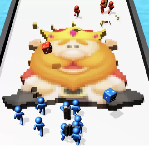 Swipe your finger to throw a dice. After the dice rolls, it spawns as many humans as dice value.The Humans automatically start to collect the pixel cubes from the art and carries them to your “base”.Collect more cubes than your opponent to win.